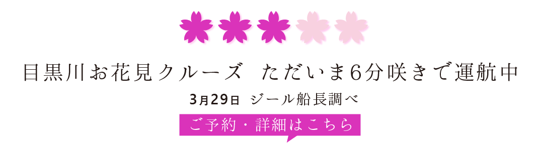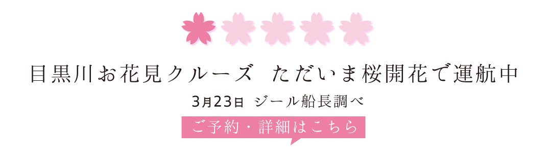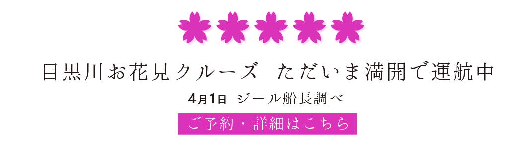 目黒川お花見クルーズ2026 毎年大好評クルーズ!【乗合便】(3月23日~4月12日)