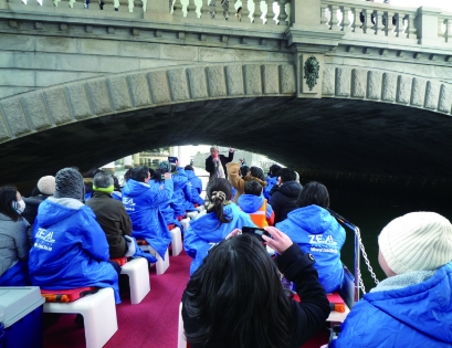 江戸から現代への歴史を追いながら数々の橋の違いを実際にくぐってお楽しみいただけます。低い橋を通る時は運河船ならではのスリリングな迫力満載です。