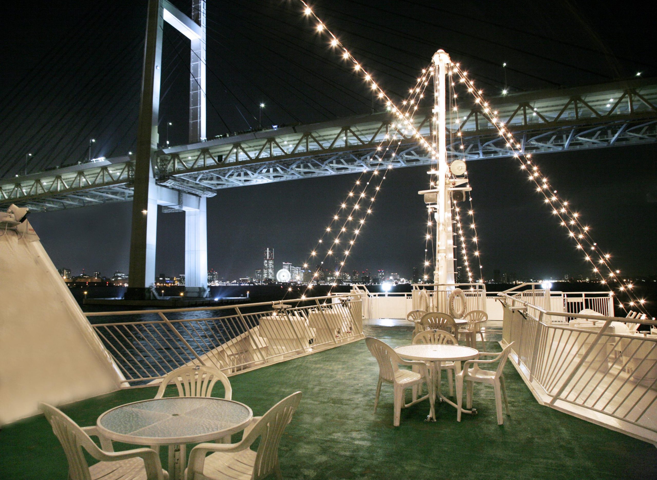 船内の最上階はスカイデッキとなっており、360度のパノラマで、港町横浜を堪能頂くことが可能です。
