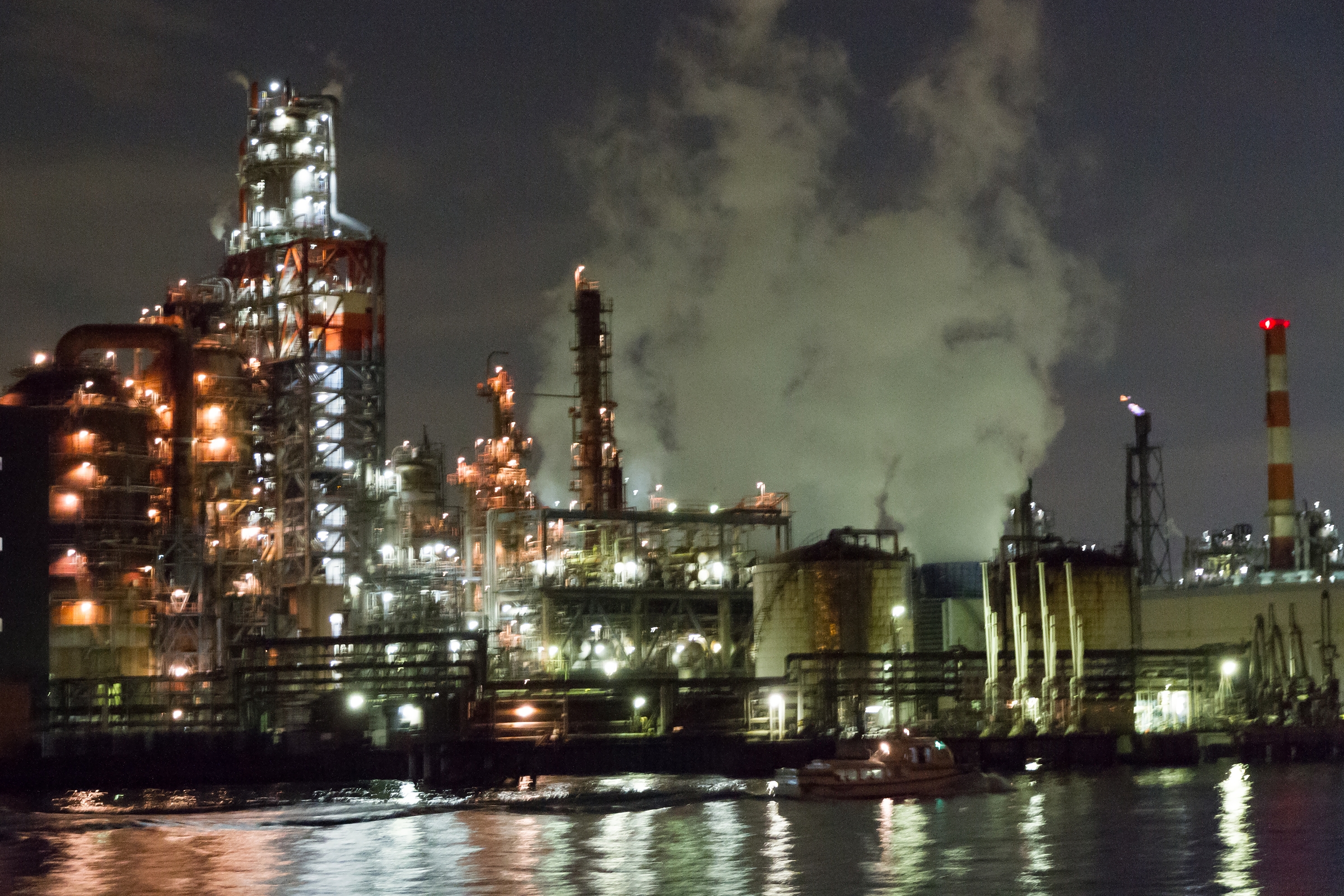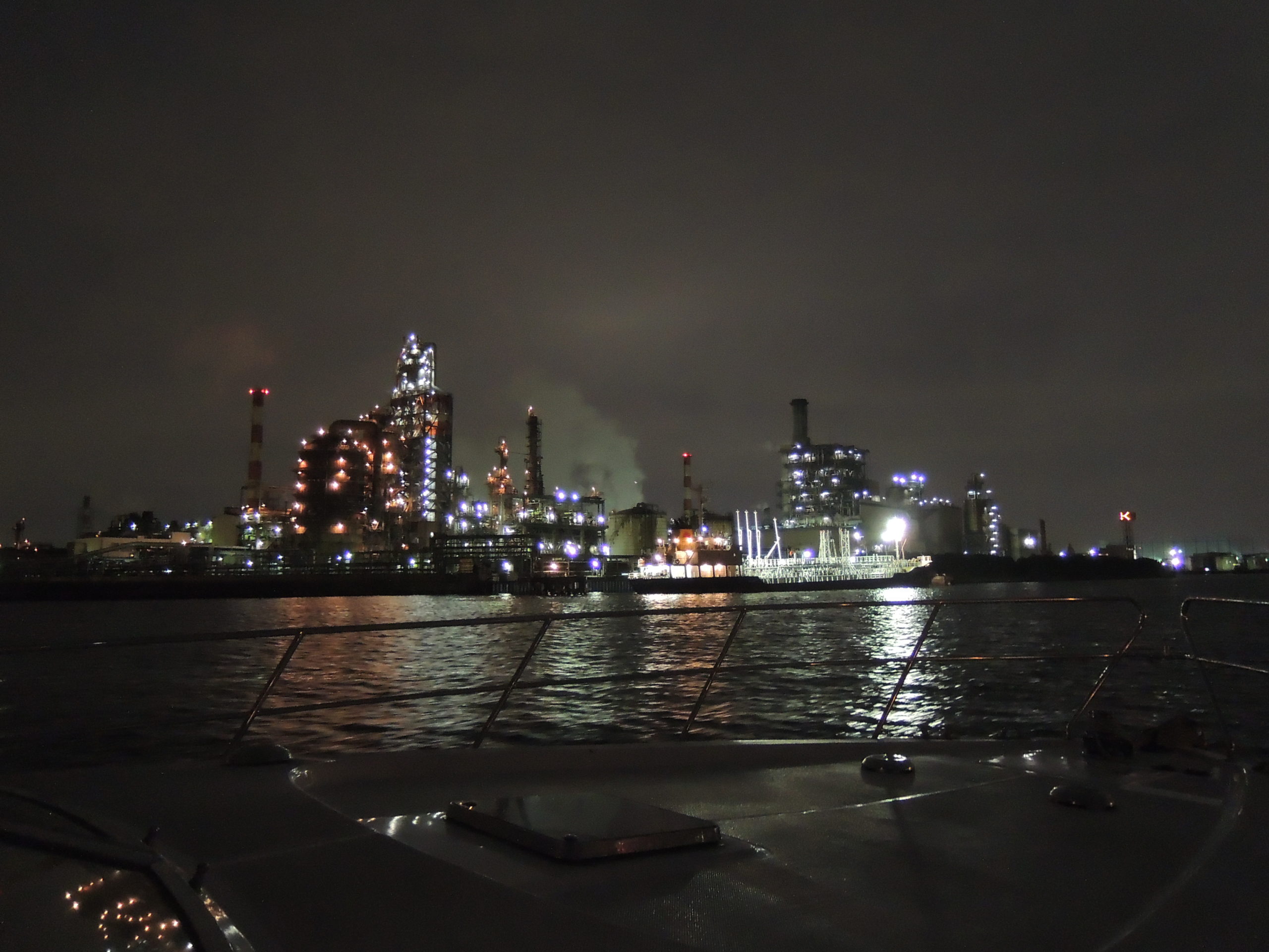 小型船ならではの狭い工場運河を探検!塩浜運河沿いに壮麗な夜景を誇る東亜石油京浜製油所水江工場まで、往復します。途中、モノレール沿いの運河や工場地帯の千鳥運河を航行できるのは、小型船を利用するこのプランだけの魅力です。