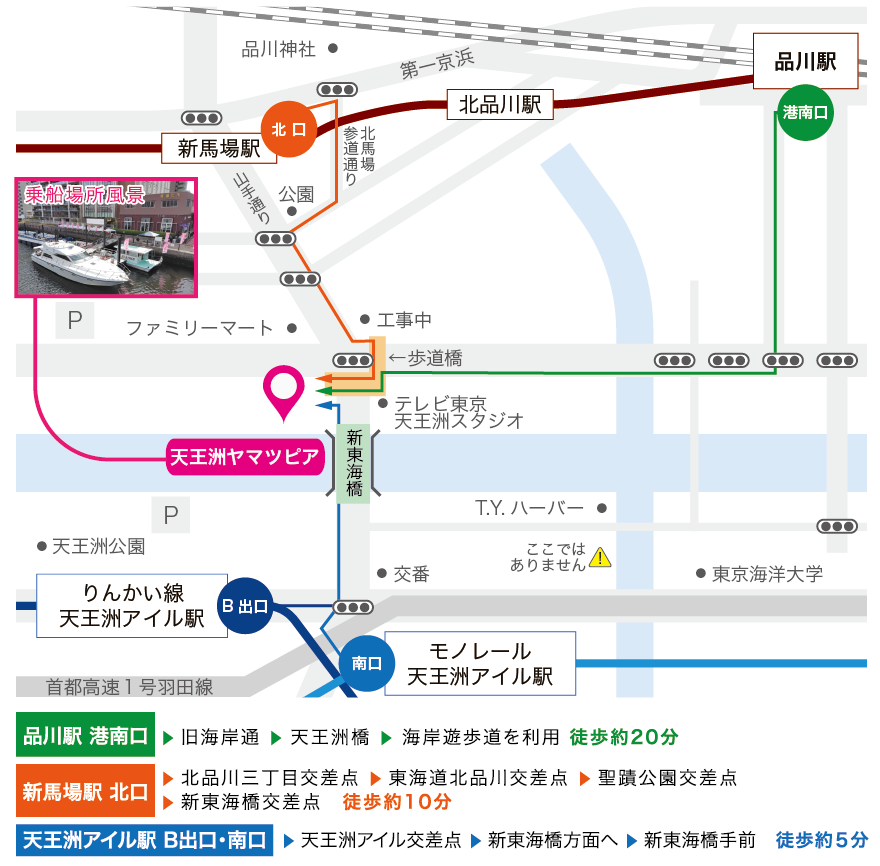 当日は出航15分前までに乗船場所:「天王洲ヤマツピア」にお越しください。