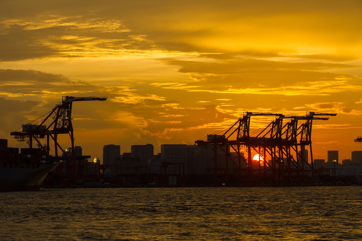サンセットに照らされる東京タワー、レインボーブリッジ、豊洲市場、東京2020で使用された選手村、お台場、大井品川埠頭はいつもと違った表情を見せてくれます。